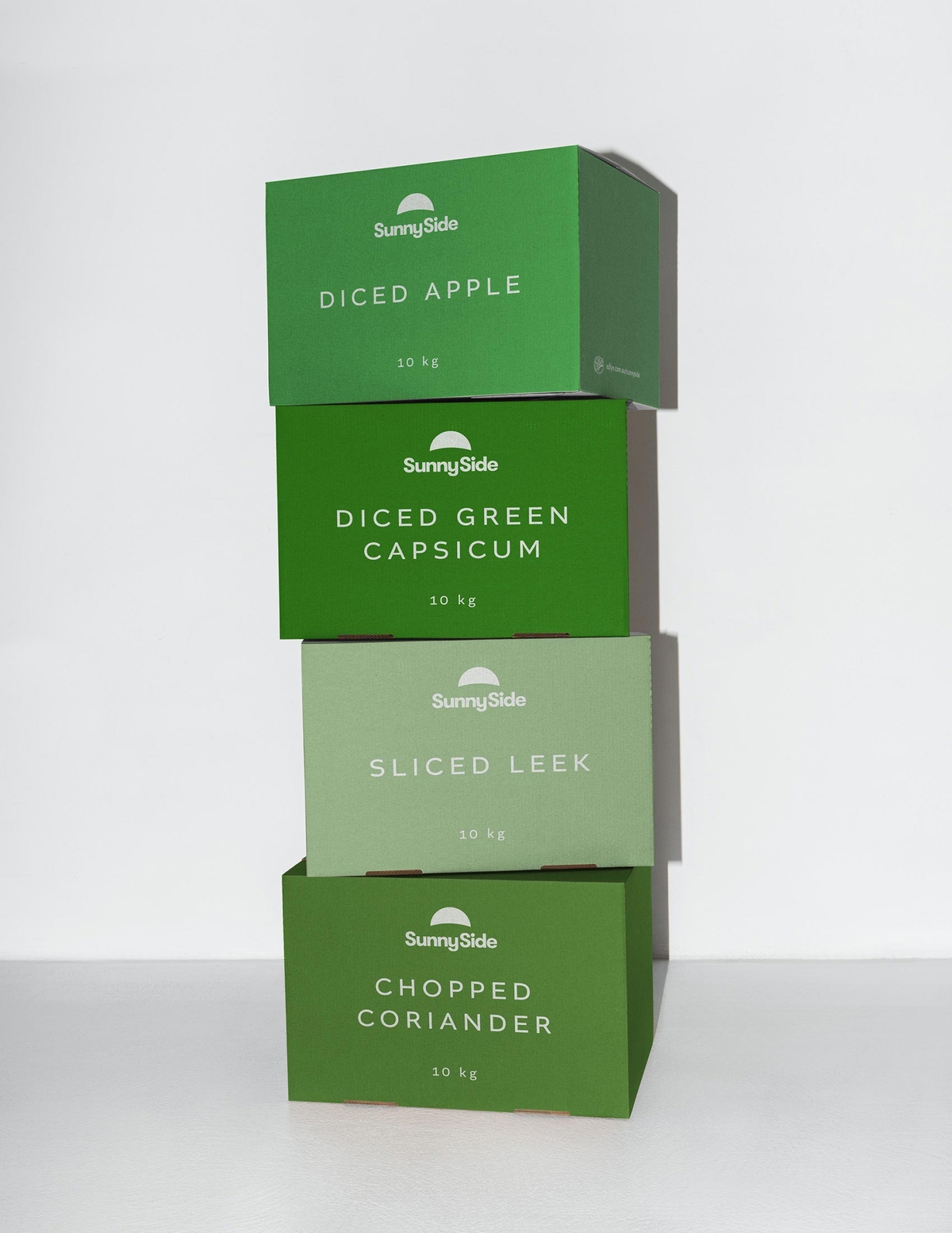 To hold that spectrum together, the brand also needed a strong identity base. We developed two core colours: Abundance, a deep grounding shade, and Ripe, a bright energetic counterpart. Together, they give SunnySide a recognisable brand world beyond the individual product colours. Fresh, minimal, bold and premium, without losing the warmth and approachability of foodservice. The final identity brings a new level of clarity and appetite appeal to the category. It feels clean, colourful and confident. It gives Edlyn a stronger platform within frozen produce, while allowing SunnySide to stand distinctly on its own. A practical product range, given a more vivid point of view. Frozen, but full of life.