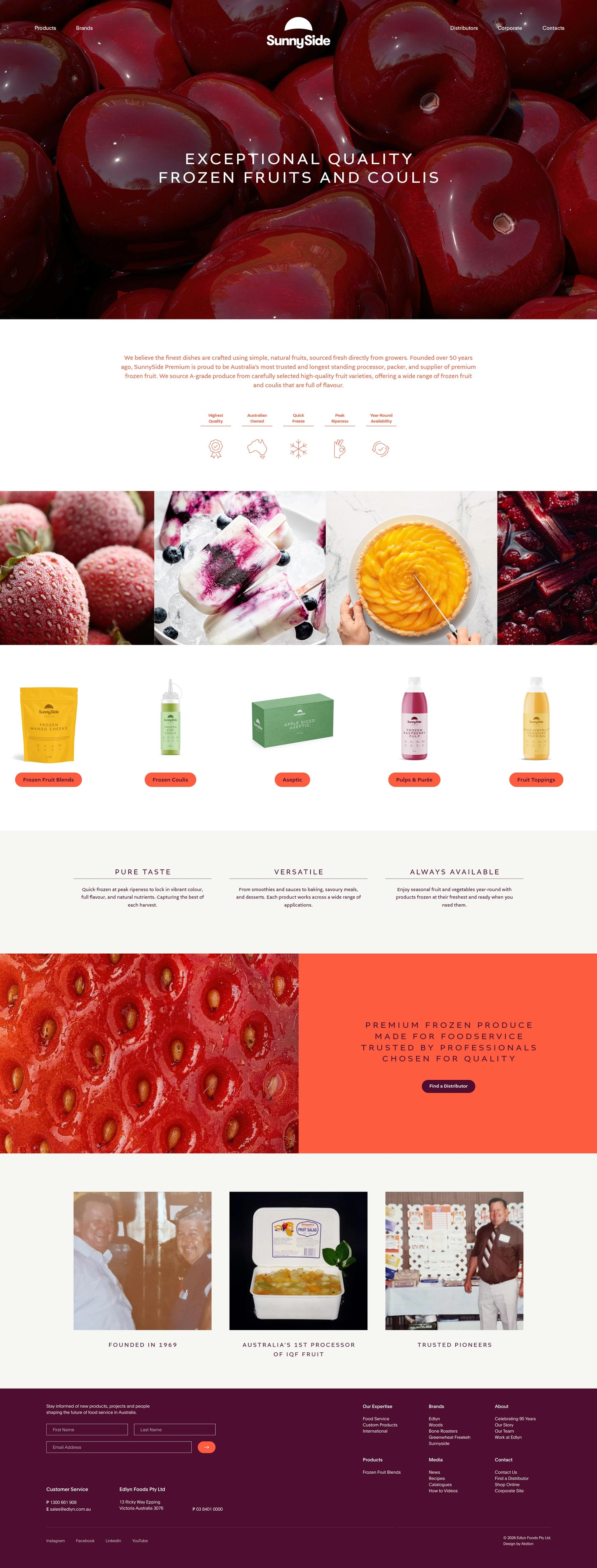 Our role was to reposition SIMPED as SunnySide Premium, building on an established Edlyn product line while giving it a more ownable, modern and expressive identity. The strategic direction was shaped around a simple idea: frozen should still feel fresh. The audience was broad, but specialised. Chefs. Caterers. Pastry teams. Smoothie bars. Commercial kitchens. Beverage producers. Yoghurt and ice cream manufacturers. Foodservice professionals who need consistency, quality and availability, but still care deeply about flavour, colour and presentation. SunnySide had to work hard across all of them. Clear enough for procurement. Inspiring enough for kitchens.